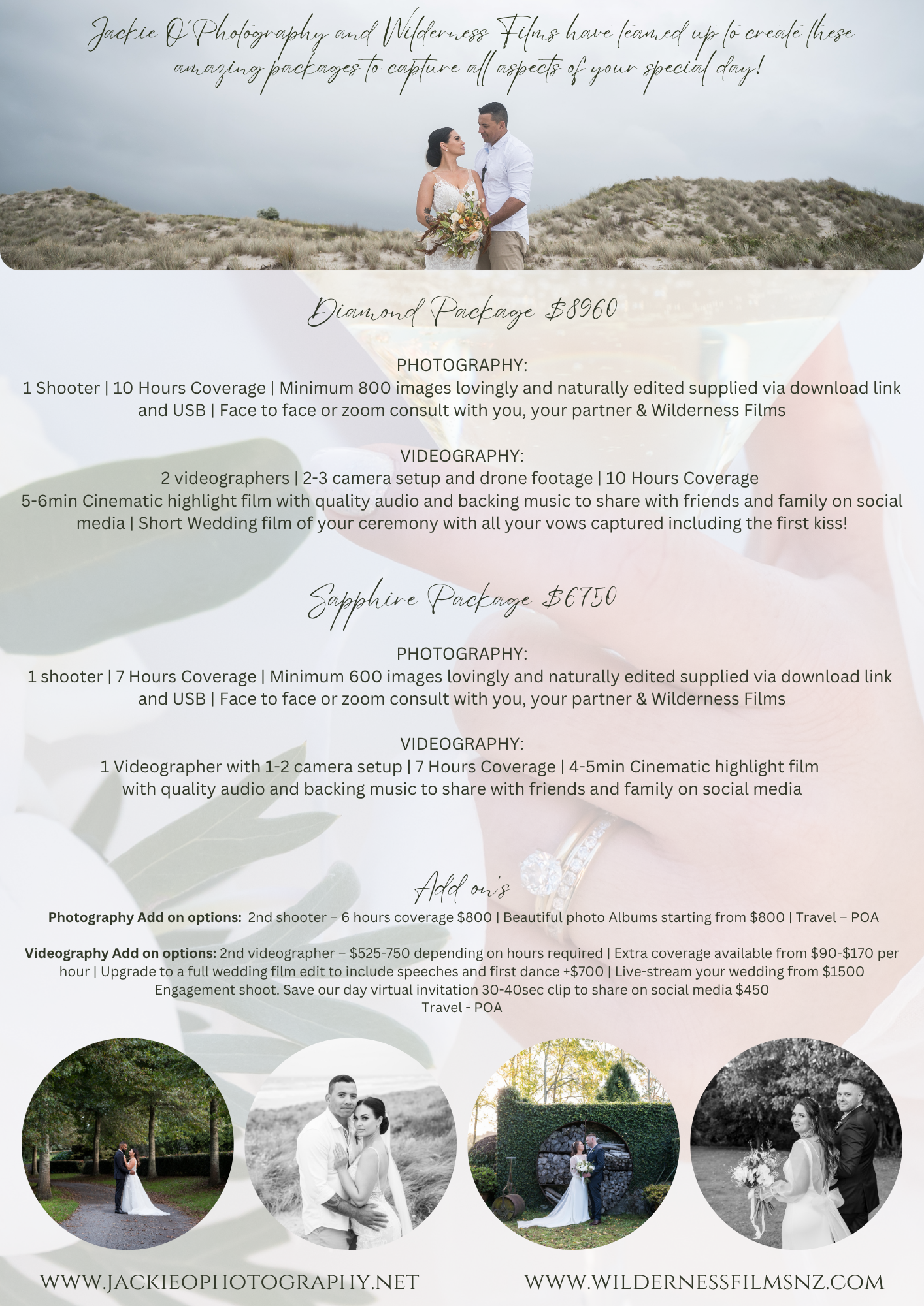 We also work with Wildnerness Films to offer Photography & Videography Packages.